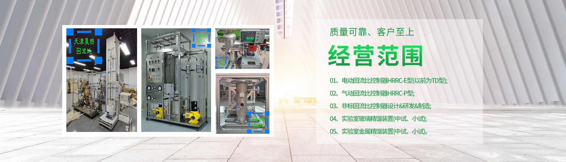 01、電動(dòng)回流比控制器HRRC-E型(以前為TD型);02、氣動(dòng)回流比控制器HRRC-P型;03、非標(biāo)回流比控制器設(shè)計(jì)&研發(fā)&制造;04、實(shí)驗(yàn)室玻璃精餾裝置(中試、小試);05、實(shí)驗(yàn)室金屬精餾裝置(中試、小試)。